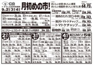 9月16日から9月18日のチラシは「秋味届きましたフェア。塩サンマ215円」