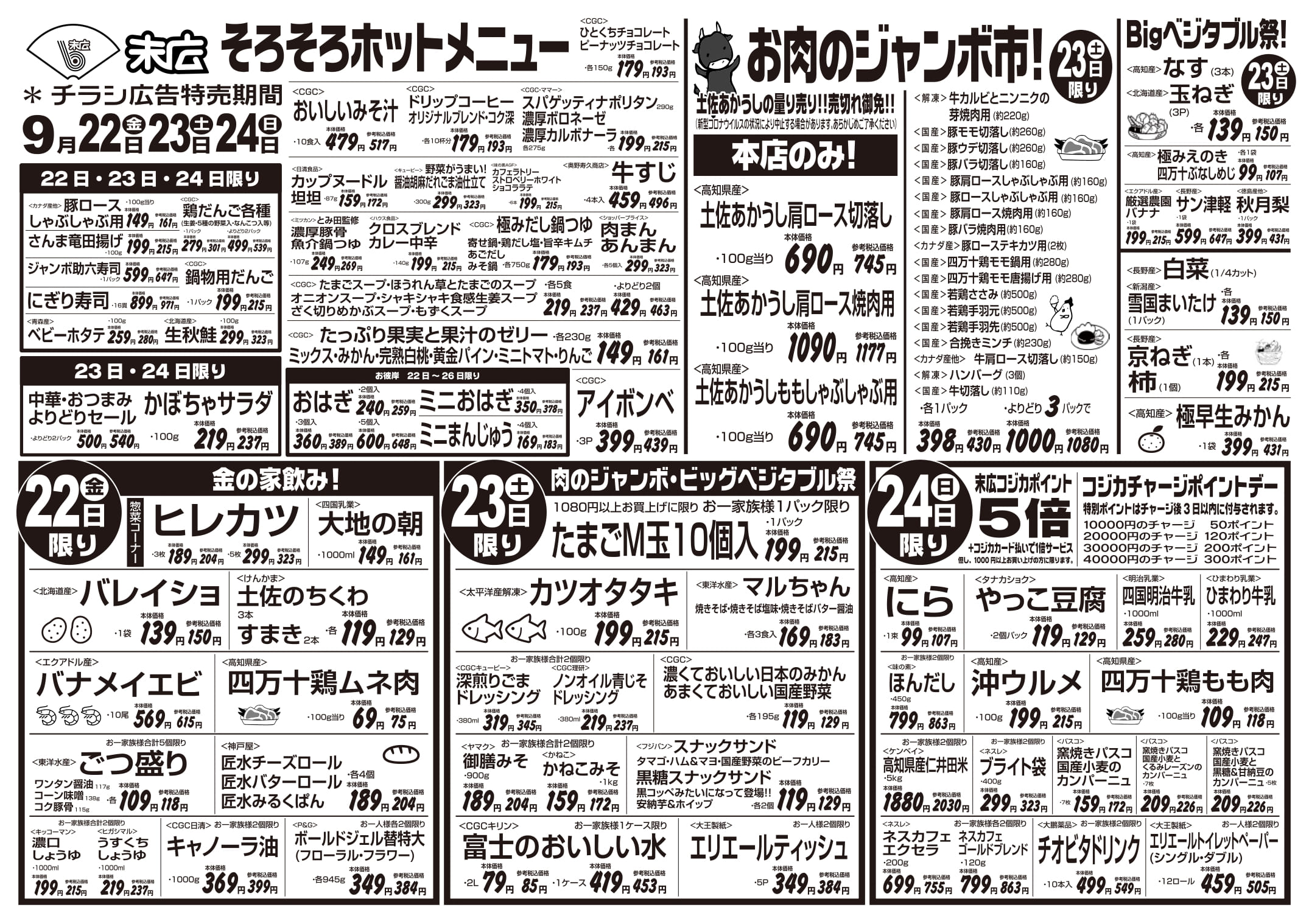 9月22日~9月28日のチラシは「そろそろホットメニュー 豚ロースしゃぶしゃぶ用 161円」
