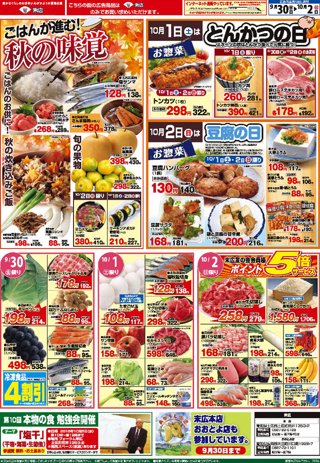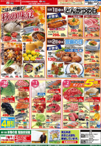 9月30日から10月2日のチラシは「ごはんがすすむ秋の味覚。博多徳永一口明太子268円」