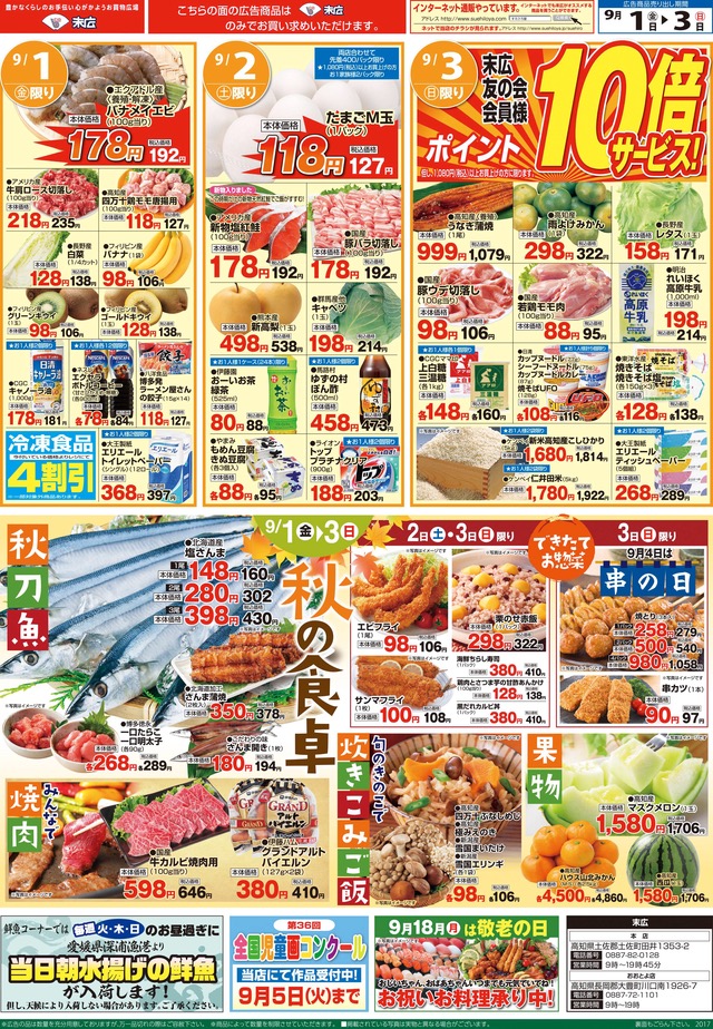 9月1日から9月3日のチラシは「秋の食卓。北海道産塩さんま148円」