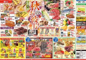 9月20日から9月23日のチラシは「秋のお彼岸。紅鮭紅ズワイガニちらし寿司580円」
