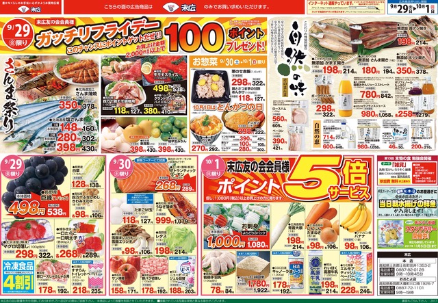 9月29日から10月1日のチラシは「10月1日はとんかつの日。カツ丼270円」