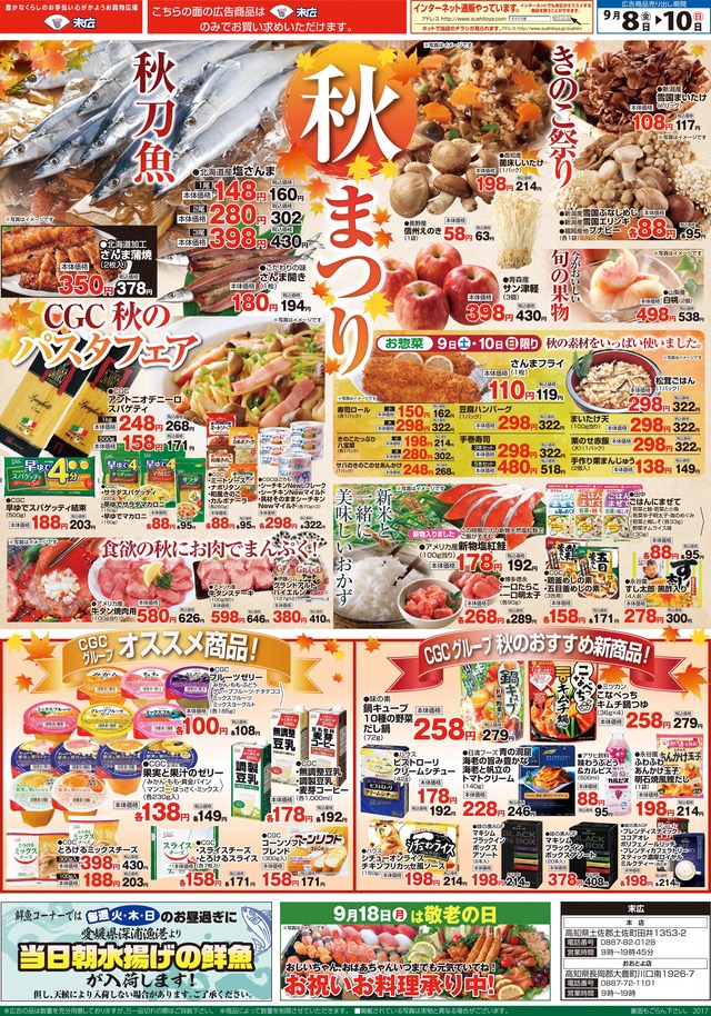 9月8日から9月10日のチラシは「秋まつり。新潟産雪国まいたけ108円」