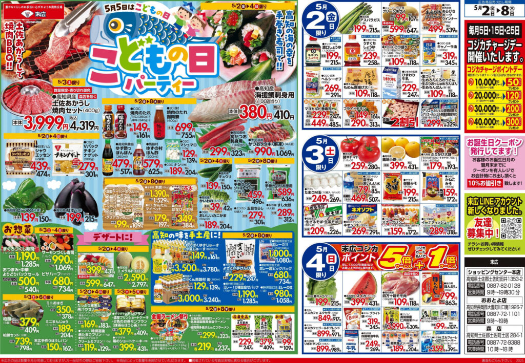 5月2日~5月8日のチラシは「こどもの日パーティー 海援鯛刺身用 410円」
