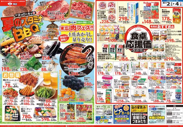 8月2日から8月4日のチラシは「夏のスタミナBBQ。牛肩ロースステーキ198円」