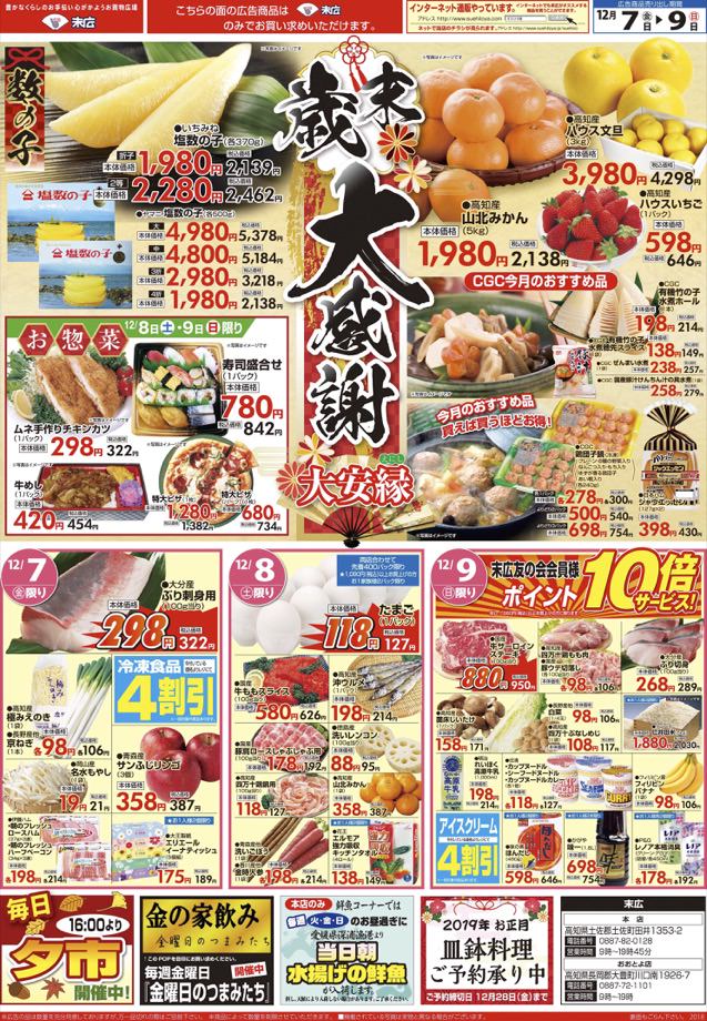 【末広チラシ情報】ネットでチラシを確認できます。 12月7日から12月9日のチラシは「歳末大感謝祭。塩数の子1,980円」 http://ow.ly/wugp30mRQOF 簡易版jpg(191kB)、 http://ow.ly/kHqu30mRQNQ 詳細版pdf(5.1MB) -