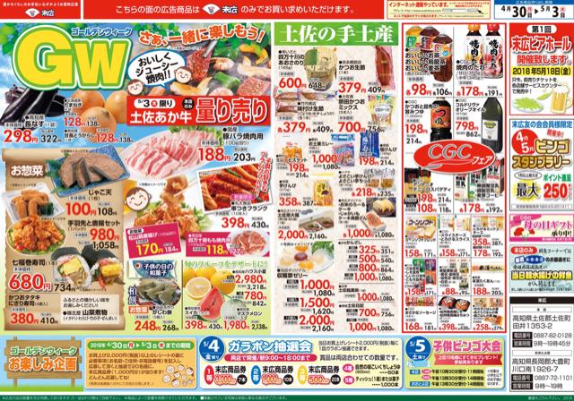 【末広チラシ情報】ネットでチラシを確認できます。 4月30日から5月3日のチラシは「GWさあ、一緒に楽しもう!国産豚バラ焼肉用188円」 http://ow.ly/HAkE30jDTzC 簡易版jpg(101kB)、 http://ow.ly/FmNO30jDTwo 詳細版pdf(4.6MB) -
