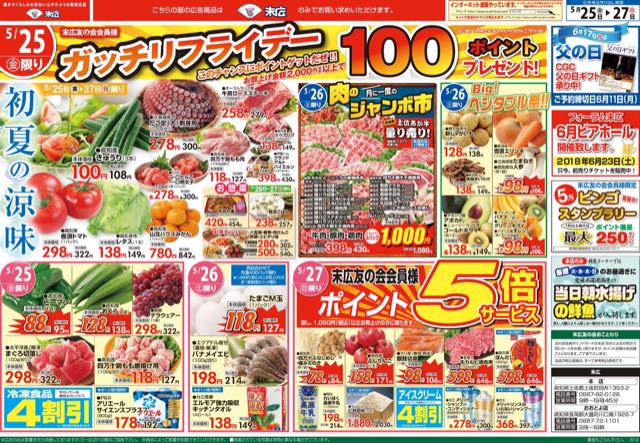 【末広チラシ情報】ネットでチラシを確認できます。 5月25日から5月27日のチラシは「初夏の涼味。高知産きゅうり100円」 http://ow.ly/JGvT30k63wl 簡易版jpg(102kB)、 http://ow.ly/bLcv30k63rx 詳細版pdf(5MB) -