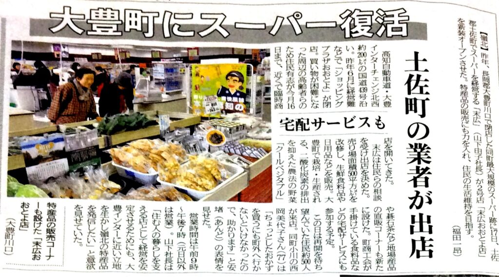 弊社の新店舗「おおとよ店」のオープンについて、高知新聞2014年1月18日付け朝刊に掲載されました。 -