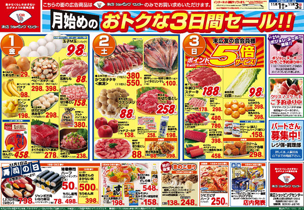 【末広チラシ情報】ネットでチラシを確認できます。 今日のチラシは「月始めのおトクな3日間セール。玉子M玉98円」 http://ow.ly/qelV0 簡易版jpg(163kB)、 http://ow.ly/qelK5 詳細版pdf(3.4MB) -