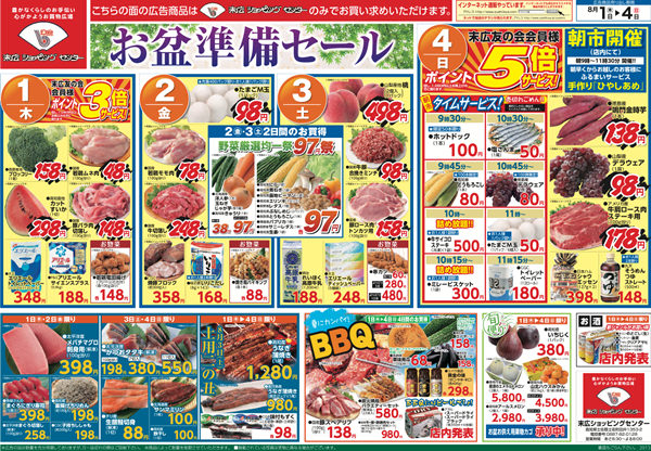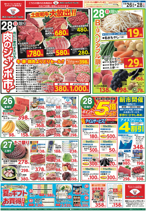 【末広チラシ情報】ネットでチラシを確認できます。今日のチラシは「お盆準備セール。カットすいか298円」 http://ow.ly/npLa8 簡易版jpg(158kB)、 http://ow.ly/npL74 詳細版pdf(9.9MB) -