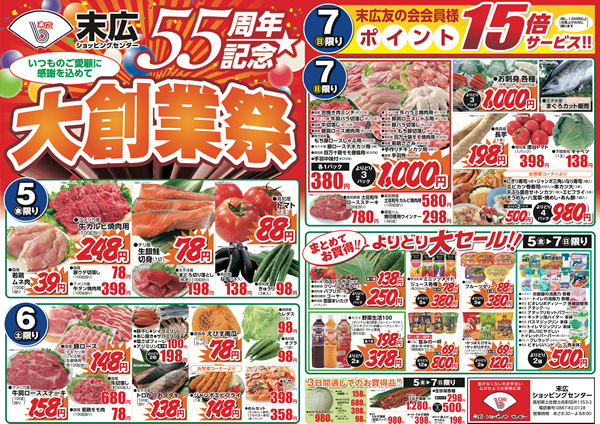 【末広チラシ情報】ネットでチラシを確認できます。 今日のチラシは「55周年記念、大創業祭。牛カルビ焼肉用248円」 http://ow.ly/mzvyt 簡易版jpg(177kB)、 http://ow.ly/mzvxq 詳細版pdf(8.6MB) -