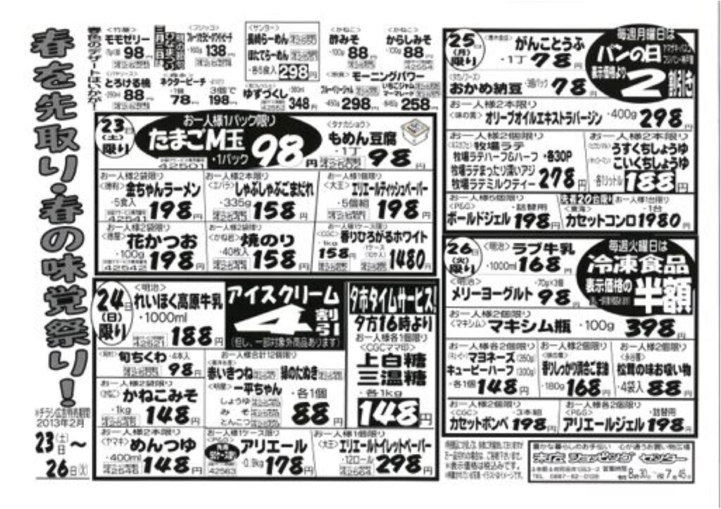 【末広チラシ情報】ネットでチラシを確認できます。 今日のチラシは「春を先取り!春野味覚祭り!モモゼリー70g×3個98円」 http://ow.ly/hWfU6 簡易版pdf(148kB)、 http://ow.ly/hWfPa 詳細版pdf(6.9MB) -