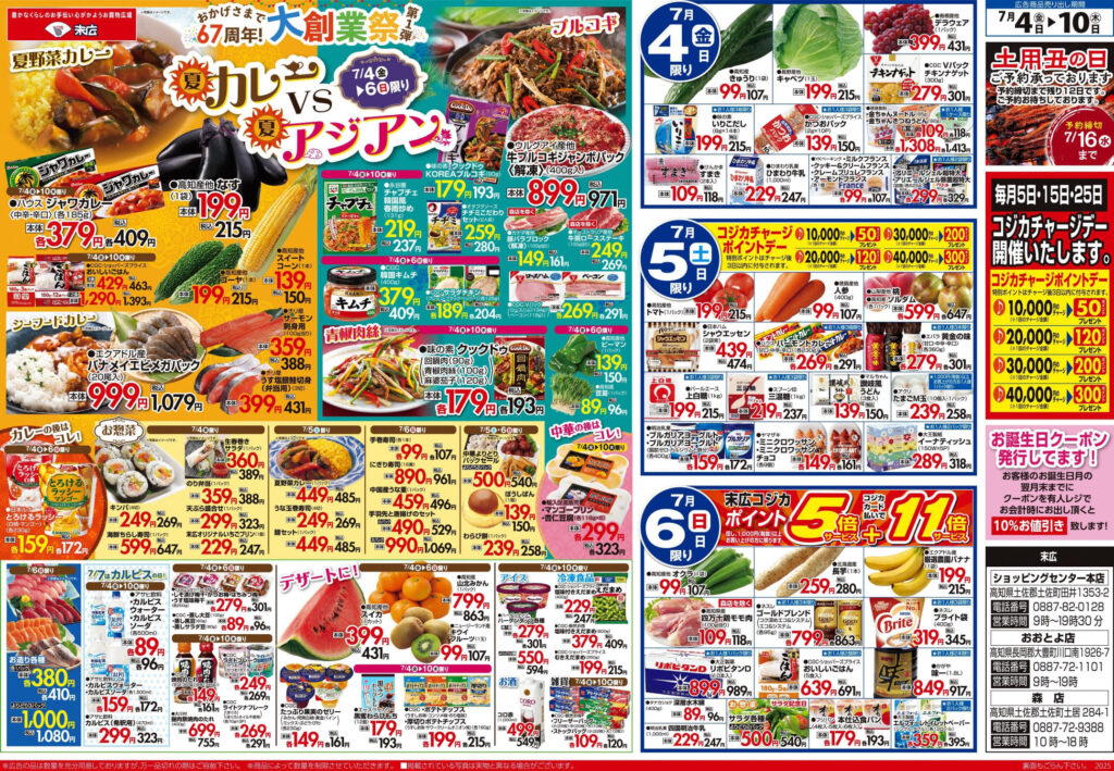 【末広チラシ情報】ネットでチラシを確認できます。 7月4日~7月10日のチラシは「大創業祭第1弾 カレーVSアジアン 牛プルコギジャンボパック 971円」 詳細版PDFはこちら(1.5MB)
