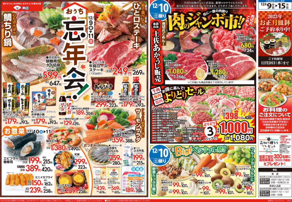 12月9日から12月11日のチラシは「おうち忘年会!鍋物用タイ切り身647円」