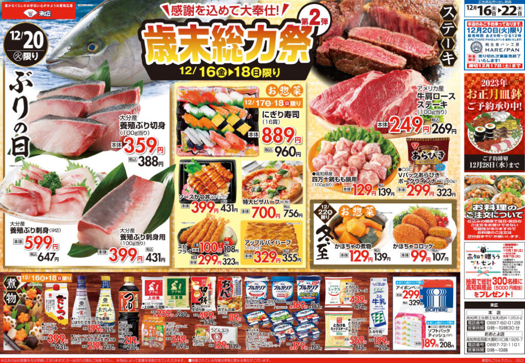12月16日から12月22日のチラシは「歳末総力祭第2弾!牛肩ロースステーキ269円」