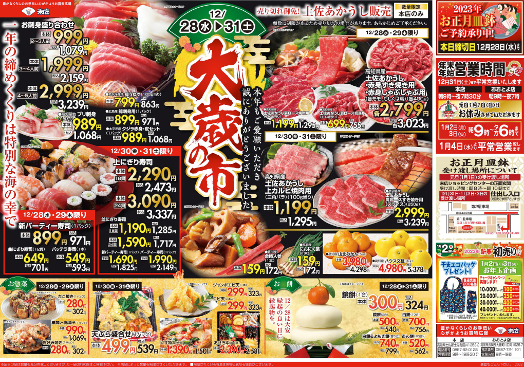 12月28日から12月31日のチラシは「大歳の市!お刺身盛り合わせ1079円」