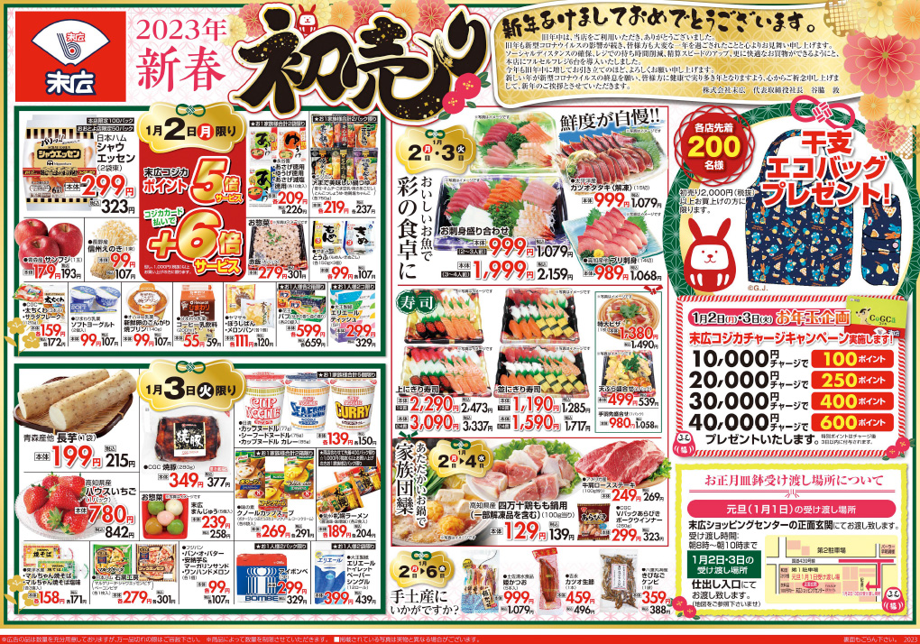1月2日から1月5日のチラシは「2023年新春初売り お刺身盛り合わせ1079円」
