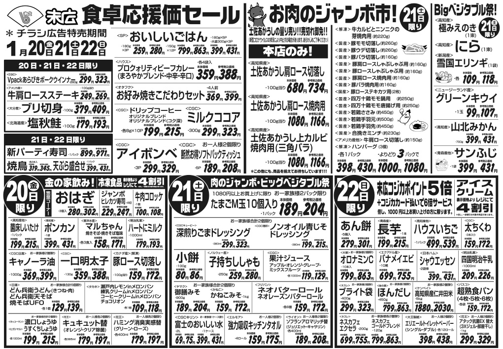1月20日から1月22日のチラシは「食卓応援価セール 秋塩鮭193円」