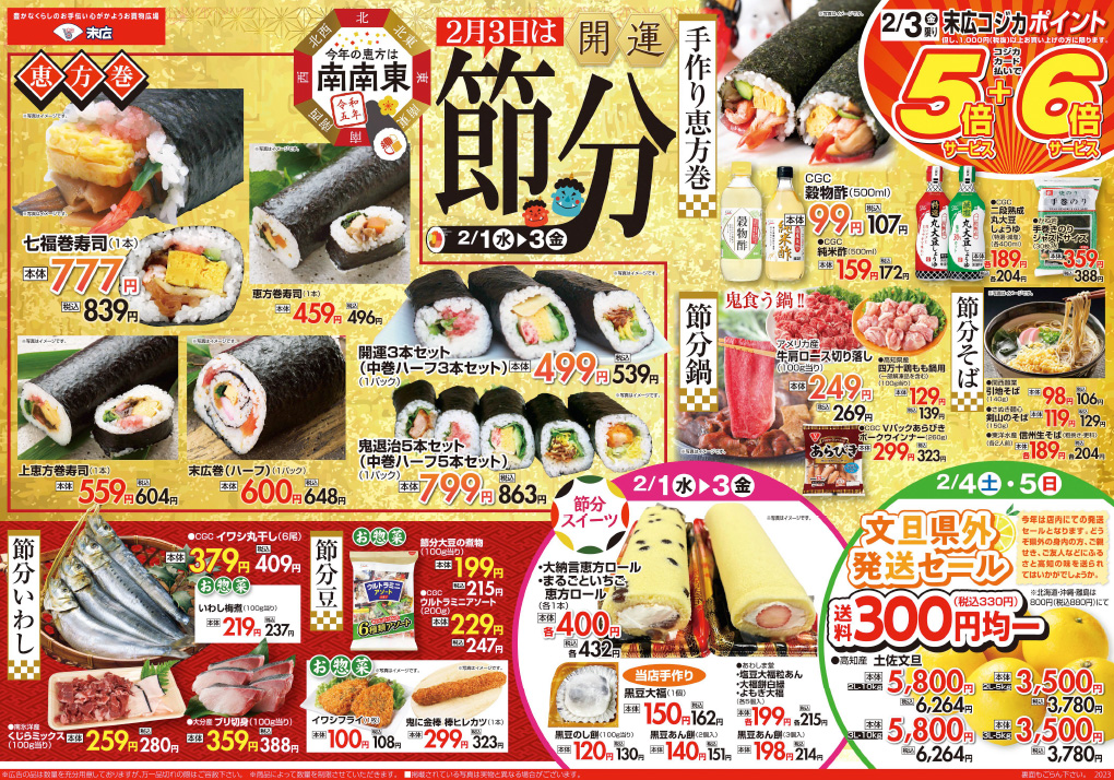 2月1日から2月3日のチラシは「2月3日は節分 七福巻寿司839円」