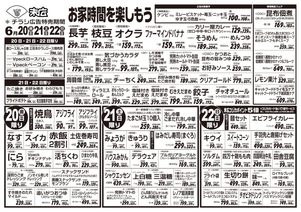 【末広チラシ情報】ネットでチラシを確認できます。 6月20日~6月26日のチラシは「お家時間を楽しもう かつお旬鮮盛り 626円」 詳細版PDFはこちら(1.5MB) -
