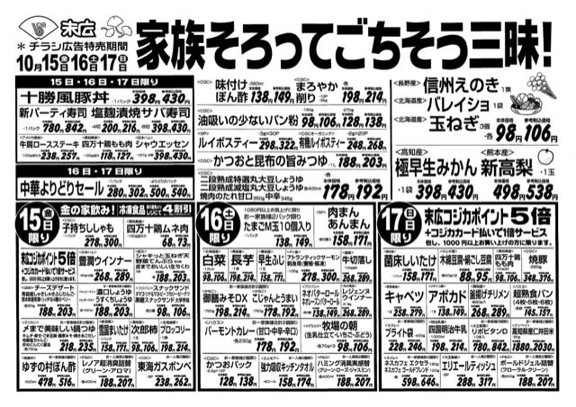 【末広チラシ情報】ネットでチラシを確認できます。 10月15日から10月17日のチラシは「家族そろってごちそう三昧!十勝風豚丼430円」 http://ow.ly/F9se50GrLWn pdf(291kB) -