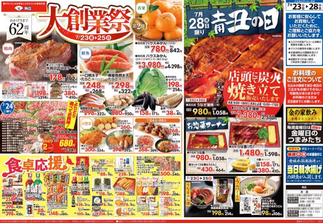 7月23日から7月25日のチラシは「おかげさまで62周年!大創業祭。牛肩ロースステーキ192円」