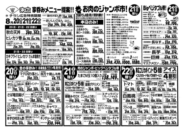 【末広チラシ情報】ネットでチラシを確認できます。 8月20日から8月22日のチラシは「家飲みメニュー提案!!ヒレカツ巻194円」 http://ow.ly/O7CV50FTKbl pdf(328kB) -