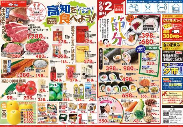1月29日から2月4日のチラシは「こじゃんと旨い!高知を食べよう!土佐あかうしサーロインステーキ1,280円」