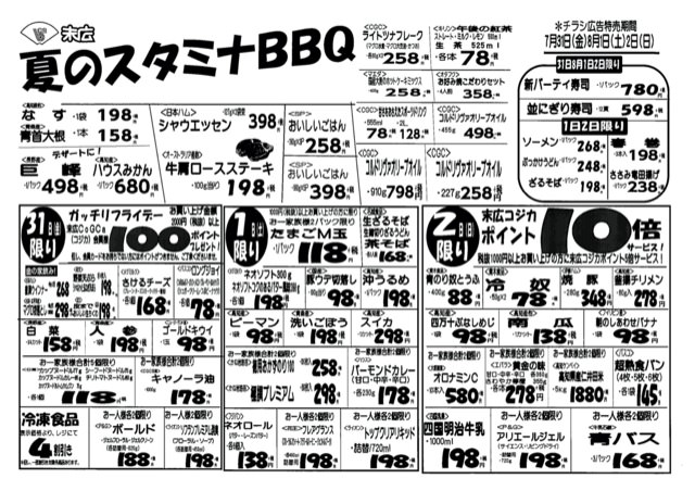 7月31日から8月2日のチラシは「夏のスタミナBBQ。シャウエッセン398円」