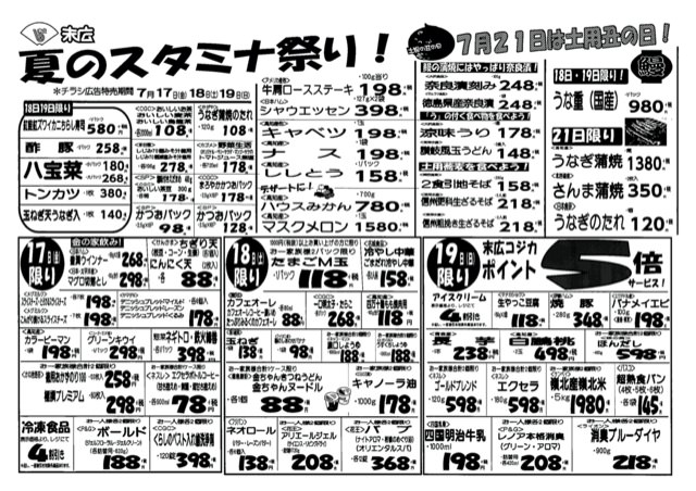 【末広チラシ情報】ネットでチラシを確認できます。 7月17日から7月19日のチラシは「夏のスタミナ祭り!トンカツ380円」 http://ow.ly/pkex30qYb6s pdf(171kB) -