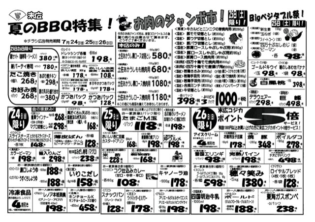 【末広チラシ情報】ネットでチラシを確認できます。 7月31日から8月2日のチラシは「夏のスタミナBBQ。シャウエッセン398円」 http://ow.ly/dW2x50AJxKs pdf(166kB) -