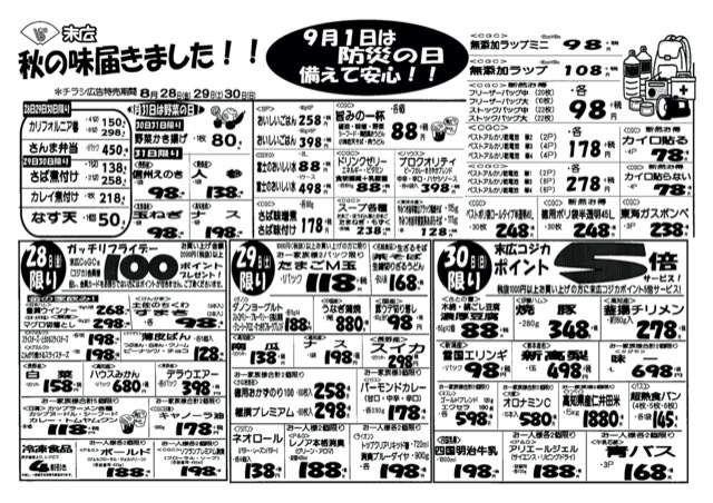 【末広チラシ情報】ネットでチラシを確認できます。 8月28日から8月30日のチラシは「秋の味届きました!!さんま弁当450円」 http://ow.ly/Pu0N50B947z 詳細版pdf(174kB) -