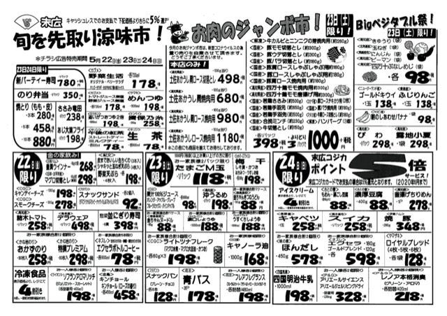 5月22日から5月24日のチラシは「旬を先取り涼味市!キリン生茶78円」