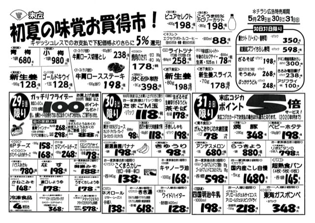 5月29日から5月31日のチラシは「初夏の味覚お買い得市!青梅680円」