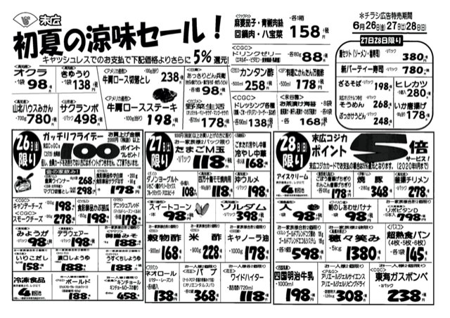 6月26日から6月28日のチラシは「初夏の涼味セール!オクラ98円」