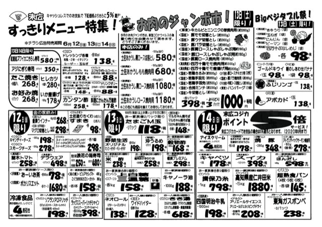 【末広チラシ情報】ネットでチラシを確認できます。 6月12日から6月14日のチラシは「スッキリメニュー特集!ドレッシング各種138円」 http://ow.ly/TbjM30qNUwm pdf(179kB) -