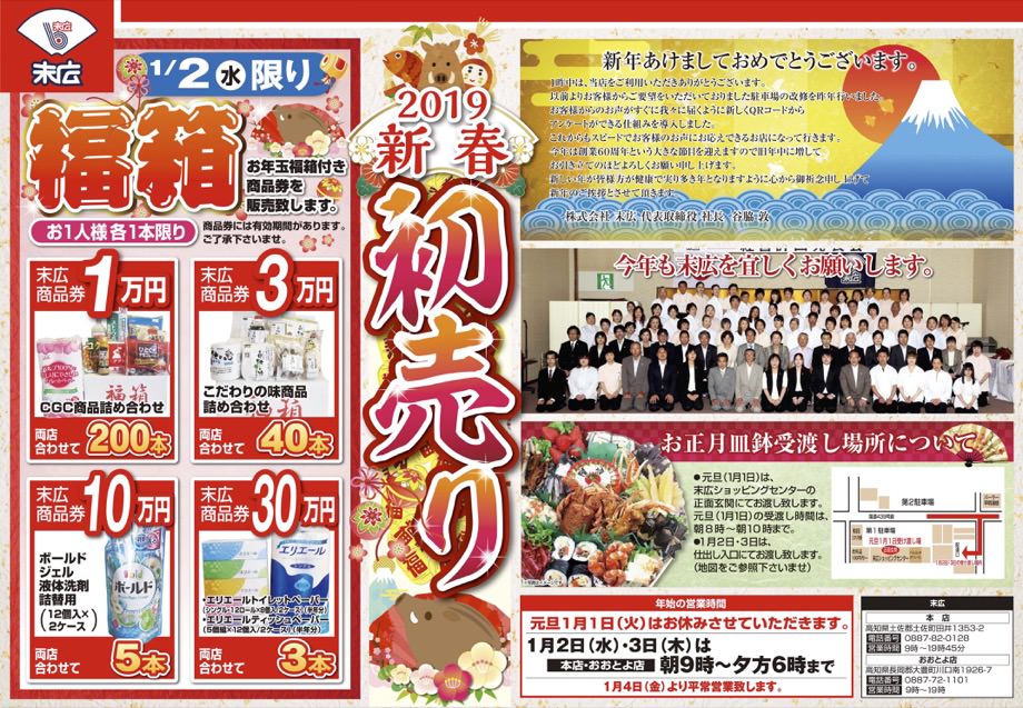1月1日から1月3日のチラシは「2019新春初売り。マグロお造り980円」