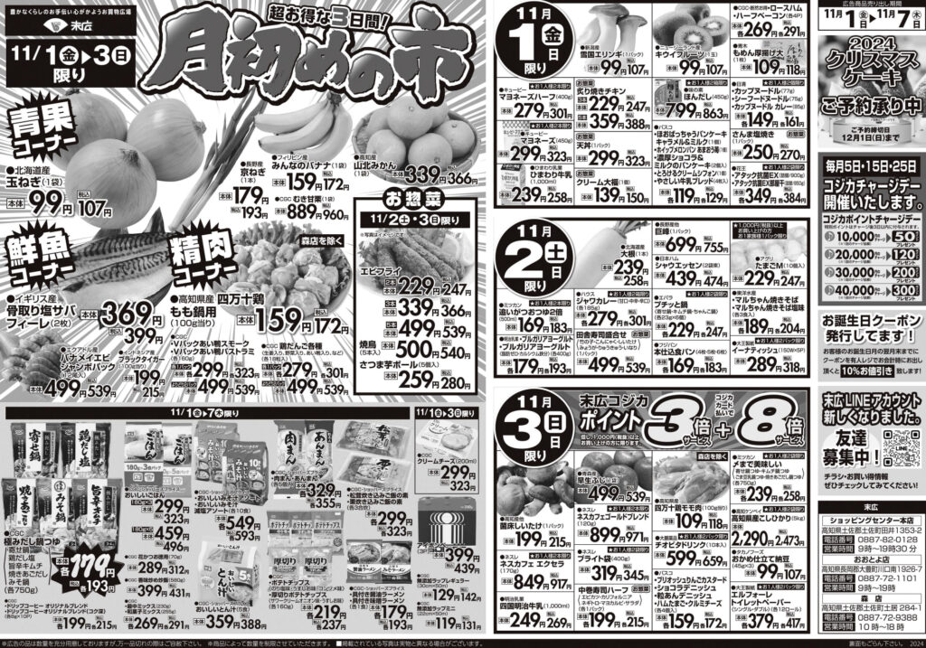 11月1日~11月7日のチラシは「月初めの市 北海道産 玉ねぎ 107円」