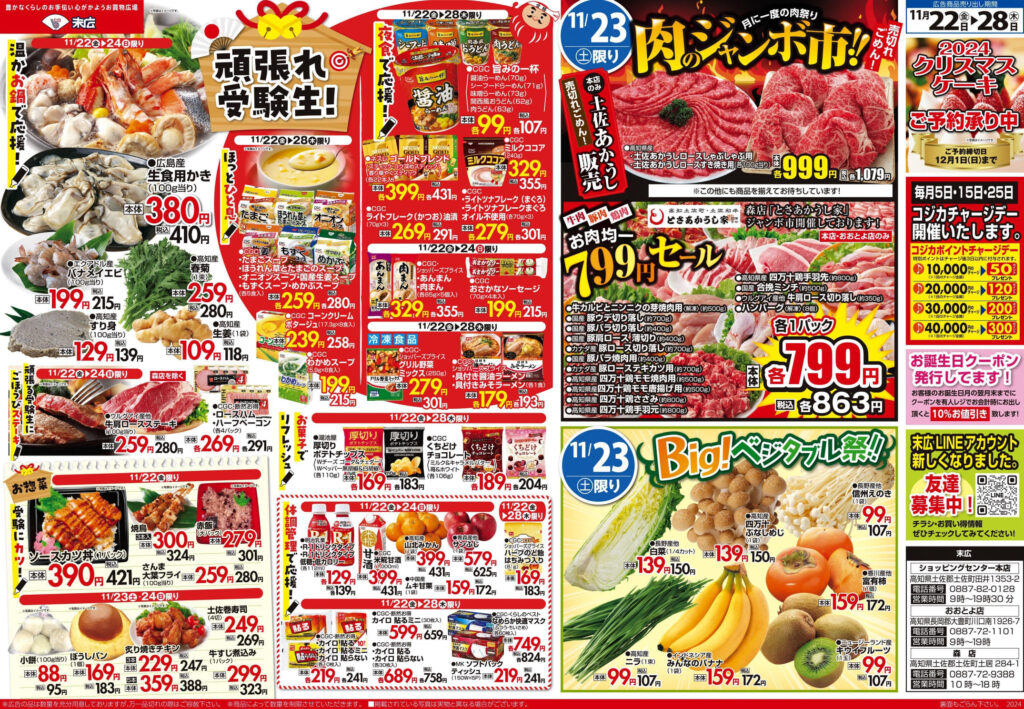 11月22日~11月28日のチラシは「頑張れ受験生! 広島県産 生食用かき 410円」