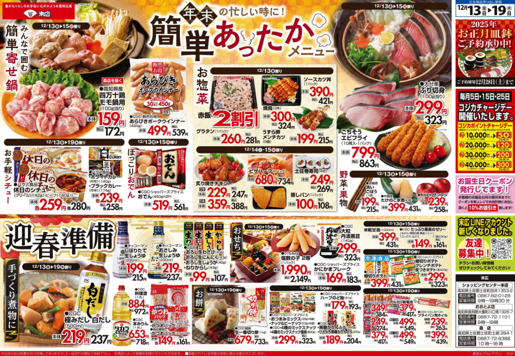 【末広チラシ情報】ネットでチラシを確認できます。 12月13日~12月19日のチラシは「簡単あったかメニュー 大分産 ぶり切身 323円」 詳細版PDFはこちら(1.5MB) -