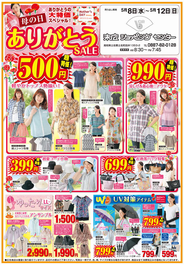 【末広チラシ情報】ネットでチラシを確認できます。 今日のチラシは「母の日ありがとうセール。トップス500円」 http://ow.ly/kAttG 簡易版jpg(154kB)、 http://ow.ly/kAtrF 詳細版jpg(2.8MB)。 「肌触り爽快、婦人インナー特集。キャミソール399円」 ... -