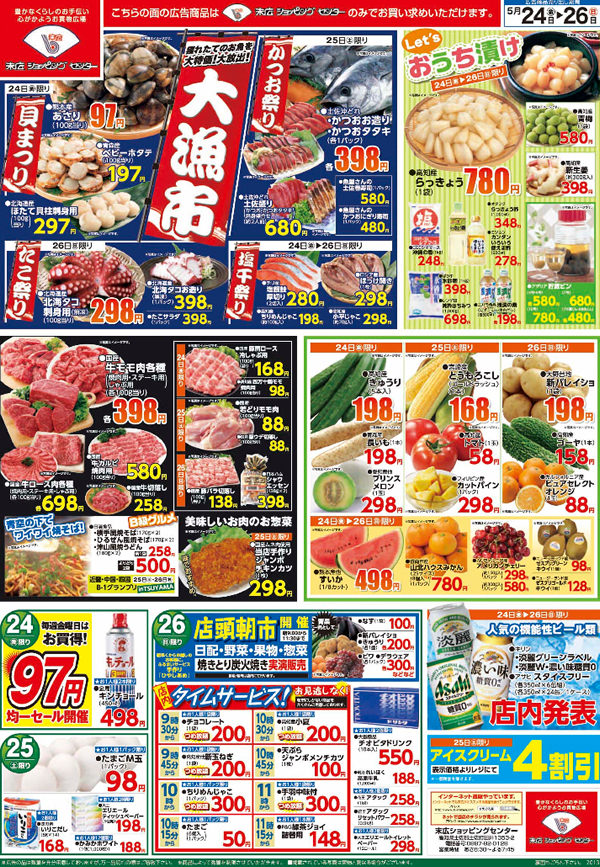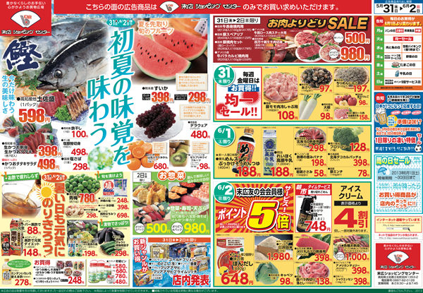【末広チラシ情報】ネットでチラシを確認できます。今日のチラシは「初夏の味覚を味わう。生かつおタタキ398円」 http://ow.ly/lrDYk 簡易版pdf(150kB)、 http://ow.ly/lrDWB 詳細版jpg(10.2MB) -