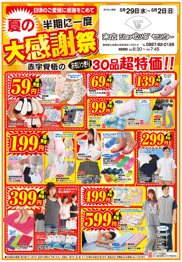 【末広チラシ情報】ネットでチラシを確認できます。 今日のチラシは「半期に一度、夏の大感謝祭。ソックス59円」 http://ow.ly/lj6sL 簡易版pdf(388kB)、 http://ow.ly/lj6rJ 詳細版pdf(3MB)。 「お値打ちアウター500円」 http://ow.ly/lj6tx 簡易版pdf(27... -
