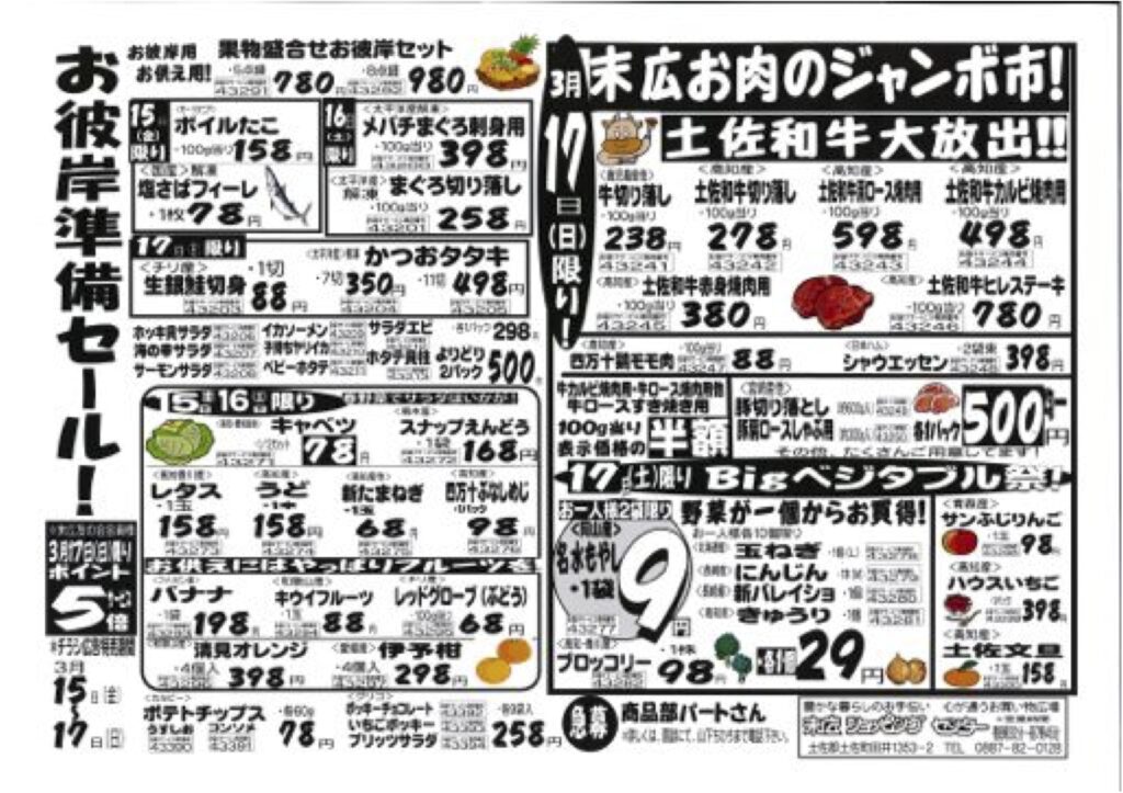 【末広チラシ情報】ネットでチラシを確認できます。 今日のチラシは「お彼岸準備セール。果物盛り合わせお彼岸セット5点盛り780円」 http://ow.ly/iNYZ1 簡易版pdf(155kB)、 http://ow.ly/iNYyi 詳細版pdf(4.3MB) -