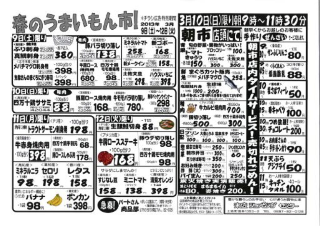 【末広チラシ情報】ネットでチラシを確認できます。 今日のチラシは「春のうまいもん市。真鯛刺身380円」 http://ow.ly/iqvt4 簡易版pdf(154kB)、 http://ow.ly/iqvlj 詳細版pdf(4.5MB) -