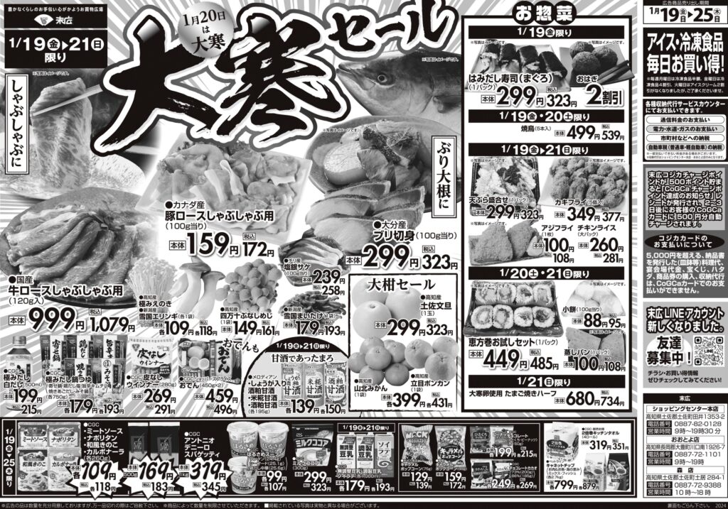 1月19日~1月25日のチラシは「大寒セール ブリ切身 323円」