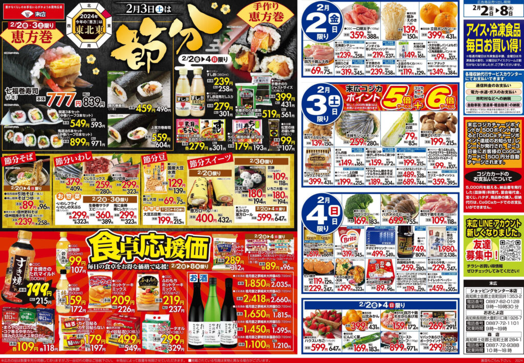 【末広チラシ情報】ネットでチラシを確認できます。 2月2日~2月8日のチラシは「2月3日は節分 七福巻寿司 839円」 詳細版PDFはこちら(1.5MB) -