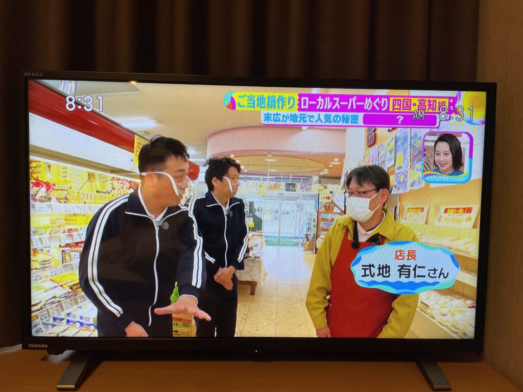 2022年3月12日、毎日放送「サタデープラス」のローカルスーパーめぐり四国・高知編に末広ショッピングセンター本店が紹介されました。 芸人さんの藤崎マーケットさんが来られ、本店店長が対応しました。 最後は通信販売を紹介していただきました。 -