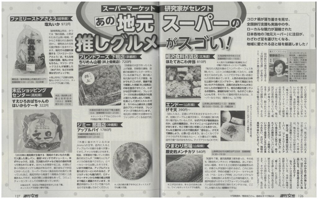 2022年12月20日号のFLASH(12月6日発行・発売) 「この地元スーパーが熱い!「他じゃ買えない」奇跡の名産品181」にて、末広ショッピングセンターが紹介されました。 取材/文は、スーパーマーケット研究科・菅原佳己さんです。 記事では、田舎寿司... -